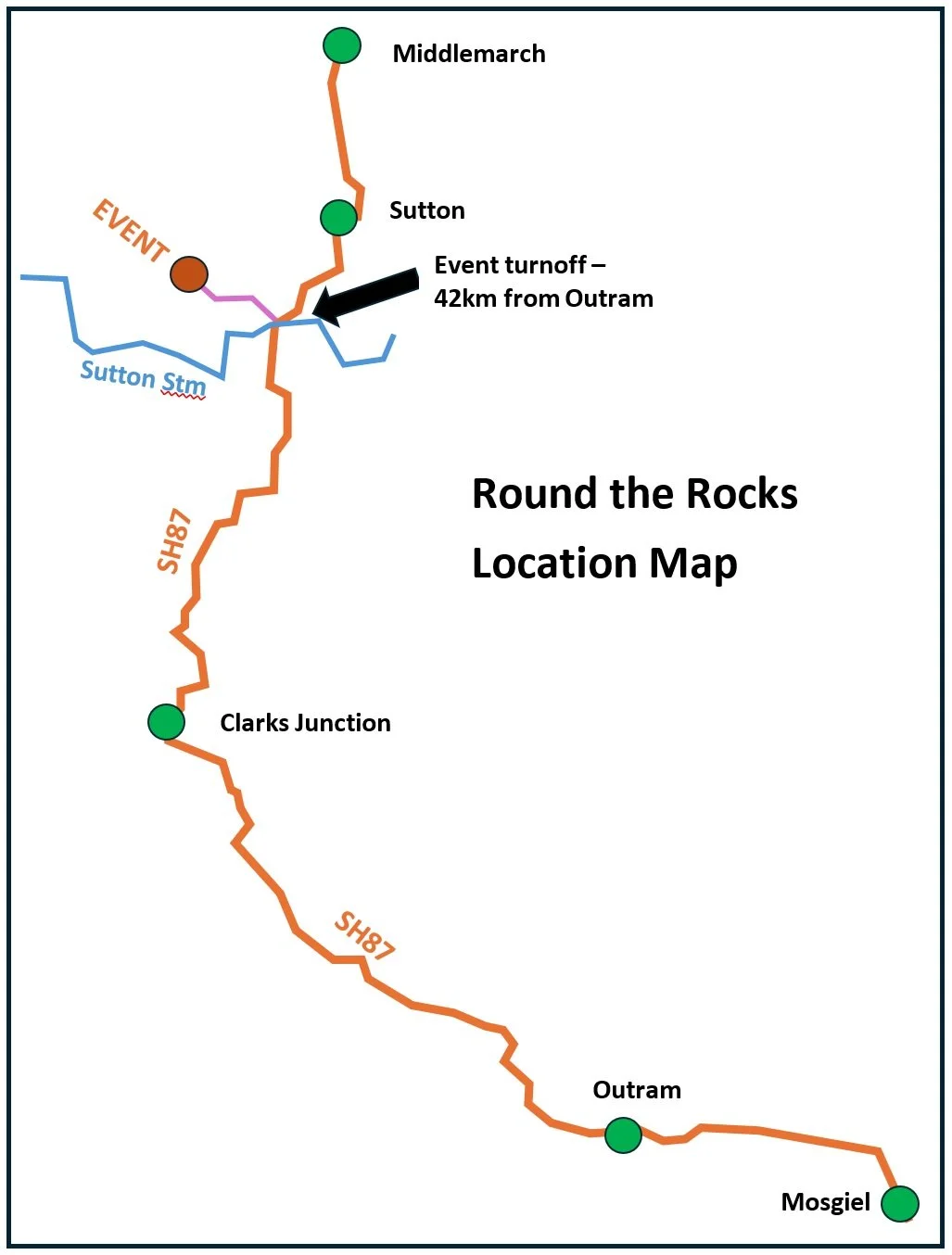 The Burgan Run, where this event is located, is 30 minutes (42km) from Outram, on the road to Middlemarch.